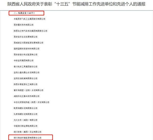 銅川能源榮獲陜西省“十三五”節(jié)能減排工作先進(jìn)企業(yè)稱號