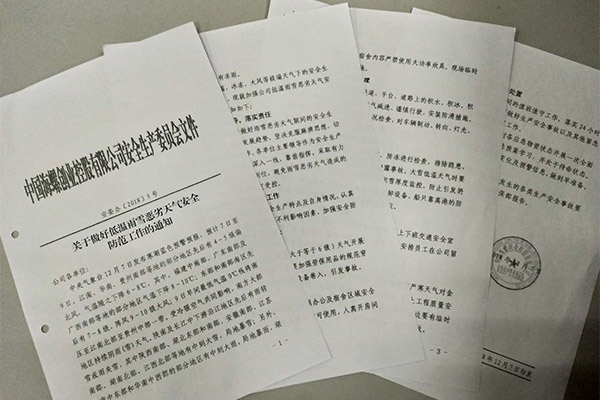 ? ? 為貫徹落實海創(chuàng)安委辦下發(fā)的《關(guān)于做好低溫雨雪惡劣天氣安全防范工作的通知》的要求,保證在持續(xù)雨雪、低溫、冰凍等極端天氣下的安全生產(chǎn)工作,確保公司生產(chǎn)經(jīng)營活動正常有序進行。海川節(jié)能各部門高度重視,積極組織人員召開安全會議,研討如何抓好低溫大雪等惡劣天氣防范應(yīng)對工作。