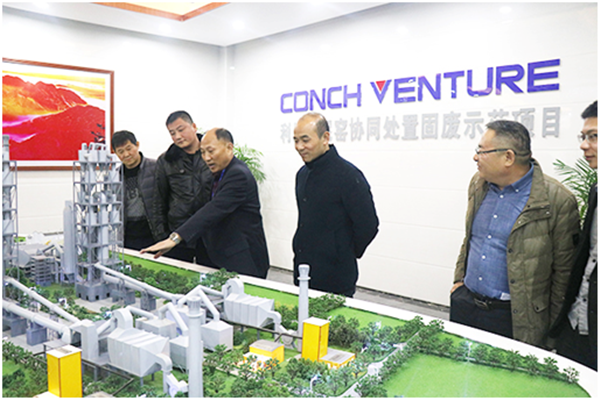 ? ? 在項(xiàng)目沙盤(pán)前,總經(jīng)理助理詹義武向宋局長(zhǎng)一行介紹了蕪湖海創(chuàng)環(huán)保水泥窯協(xié)同處置工業(yè)固廢危廢的處置工藝和技術(shù)特點(diǎn),并重點(diǎn)介紹了水泥窯協(xié)同處置所具有的處置范圍廣、環(huán)保指標(biāo)先進(jìn)等優(yōu)勢(shì)。