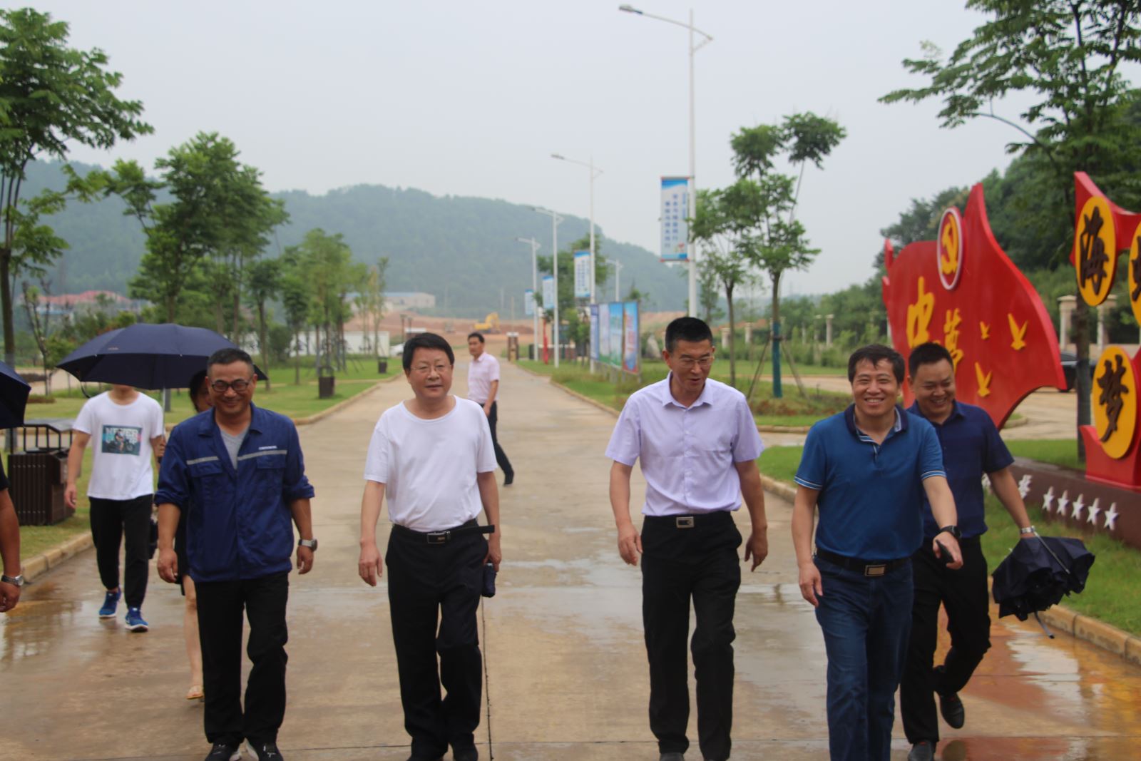 ? ? 2019年8月7日,石門縣政協(xié)副主席彭澤人、城市管理和綜合執(zhí)法局局長萬勇平、項目協(xié)調(diào)辦主任鐘清林一行來澧縣海創(chuàng)參觀調(diào)研,澧縣海創(chuàng)總經(jīng)理陳遠志、副總經(jīng)理何堤熱情接待了彭副主席一行。