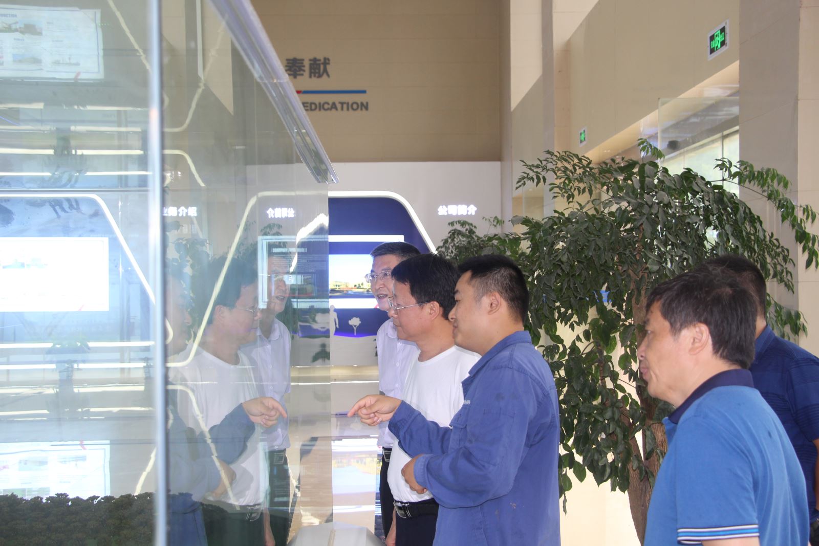 ? ? 在簡要查看廠前布局及園林綠化后,彭副主席一行徑直來到主廠房一樓,查看廠區(qū)模型,了解海螺創(chuàng)業(yè)發(fā)展歷程、項目分布情況。