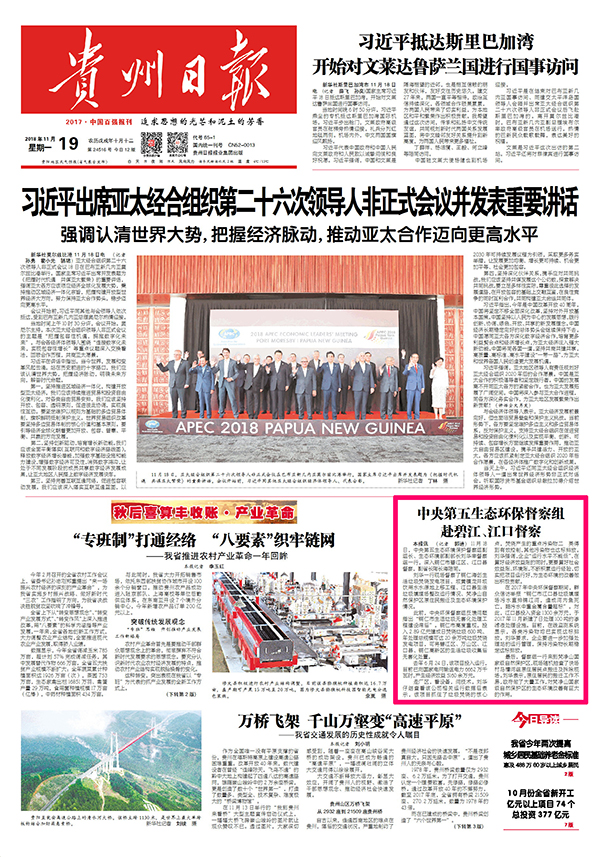 ? ? 2018年11月19日,貴州省電視臺新聞聯(lián)播、貴州日報,對中央第五生態(tài)環(huán)境保護督察組現(xiàn)場督察海螺創(chuàng)業(yè)附屬全資子公司銅仁海創(chuàng)生活垃圾焚燒發(fā)電項目進行了深度報道,對該項目予以高度肯定。