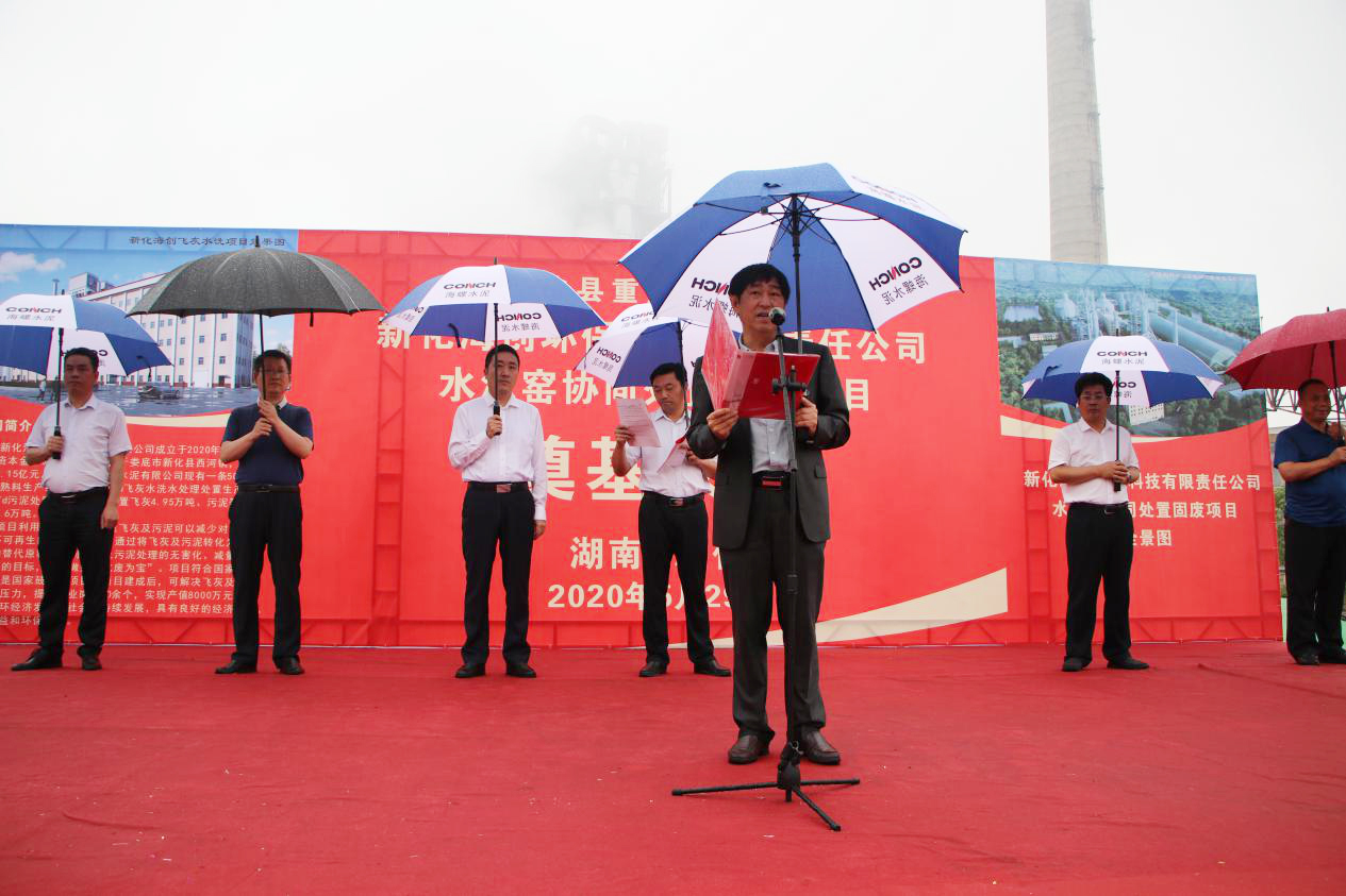 海螺創(chuàng)業(yè)總經(jīng)理助理張可可致辭。他首先向出席此次活動的各位領導、各位來賓表示熱烈的歡迎和誠摯的感謝,并簡要介紹了海螺創(chuàng)業(yè)及新化海創(chuàng)固廢項目基本情況。他指出,新化海創(chuàng)固廢項目得以飛速推進,離不開新化縣各級領導的親切關懷和大力支持。海螺創(chuàng)業(yè)必將鼓足干勁、齊心協(xié)力、攻堅克難,積極響應政府號召,與施工單位通力合作,以優(yōu)質(zhì)高效的實際行動,全力確保項目按期竣工投產(chǎn),為促進新化縣循環(huán)經(jīng)濟發(fā)展和居民生活環(huán)境質(zhì)量提升做出積極貢獻。