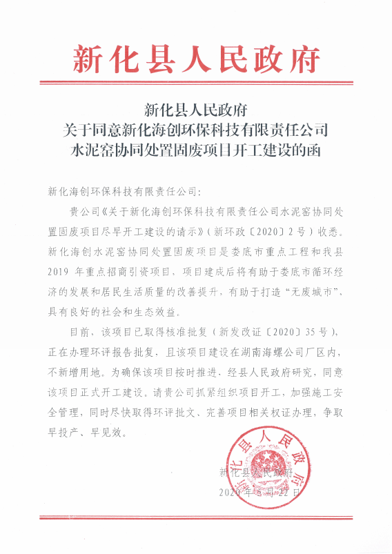 2020年5月22日取得新化縣人民政府同意項目開工建設的函