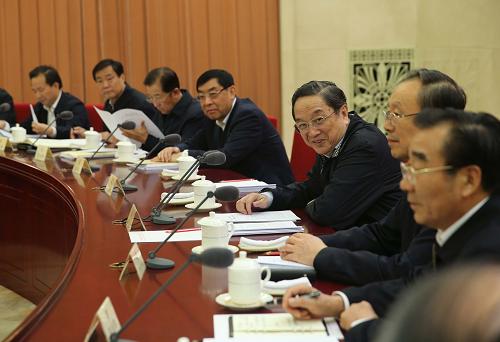 ? ? 全國(guó)政協(xié)副主席杜青林、羅富和、張慶黎、馬培華出席座談會(huì)。