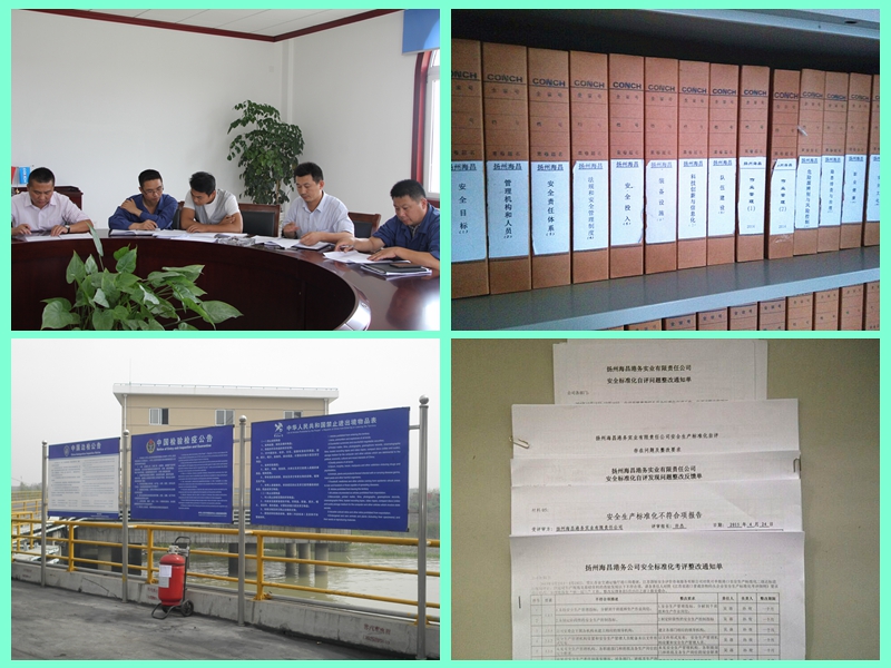 ? ? 為全面提升公司安全生產(chǎn)管理水平,加強(qiáng)內(nèi)部安全風(fēng)險(xiǎn)管控,建立持續(xù)改進(jìn)的長效機(jī)制,揚(yáng)州海昌于2014年5月份即啟動(dòng)了普貨碼頭二級安全標(biāo)準(zhǔn)化標(biāo)創(chuàng)建工作,成立由公司分管領(lǐng)導(dǎo)任組長的創(chuàng)建小組,以《江蘇省港口普通貨物碼頭企業(yè)安全生產(chǎn)標(biāo)準(zhǔn)化考評細(xì)則》要求,對公司安全目標(biāo)、管理機(jī)構(gòu)、安全生產(chǎn)責(zé)任制、安全投入、設(shè)備設(shè)施、作業(yè)管理等,逐項(xiàng)逐條安排人員進(jìn)行梳理、修訂、整理相關(guān)資料,對現(xiàn)場持續(xù)整改、完善和落實(shí),經(jīng)過自我運(yùn)行和校驗(yàn),于2014年12月中旬完成公司安標(biāo)自評并上報(bào)主管機(jī)關(guān)。