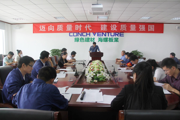 ? ? 為增強(qiáng)廣大員工的質(zhì)量責(zé)任意識(shí),響應(yīng)國(guó)家“邁向質(zhì)量時(shí)代,建設(shè)質(zhì)量強(qiáng)國(guó)”的號(hào)召,落實(shí)企業(yè)“質(zhì)量第一、用戶至上”的質(zhì)量管理理念,根據(jù)公司2015年“質(zhì)量月”活動(dòng)總體部署安排,9月25日下午14:00,安徽海創(chuàng)新材料公司在辦公樓二樓會(huì)議室舉辦了“質(zhì)量在我心中”主題質(zhì)量月演講比賽活動(dòng),來自各部門的15名選手參加了比賽,安徽海創(chuàng)新材料公司副總經(jīng)理朱智平、各部門負(fù)責(zé)人及崗位員工代表40余人觀看了比賽。