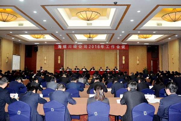 ? ? 2016年2月1日,?海螺川崎公司2016年工作會(huì)議在海螺國(guó)際會(huì)議中心輔樓多功能廳隆重召開(kāi)。兩公司班子成員、中層干部、管理骨干及先進(jìn)代表共130余人參加了會(huì)議。海螺創(chuàng)業(yè)總經(jīng)理紀(jì)勤應(yīng)應(yīng)邀到會(huì)。
