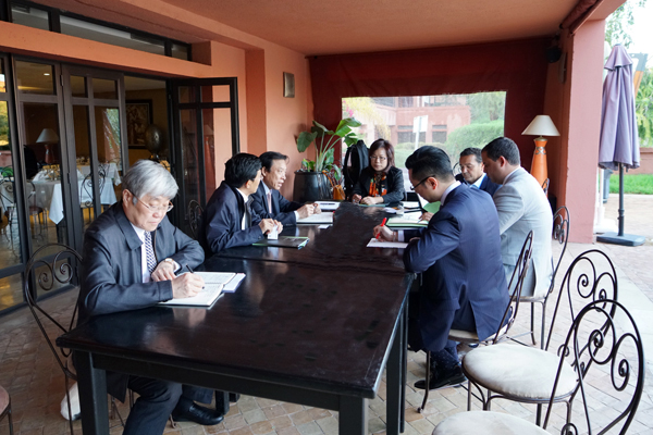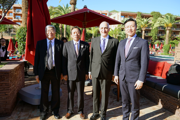 ??? 11月7日下午,經(jīng)過20多小時(shí)長途飛行抵達(dá)馬拉喀什,紀(jì)勤應(yīng)總經(jīng)理一行受到摩中商會會長金曼德先生、摩洛哥外貿(mào)銀行國際部主管Abdou先生的熱烈歡迎,雙方在下榻的酒店進(jìn)行了會晤。