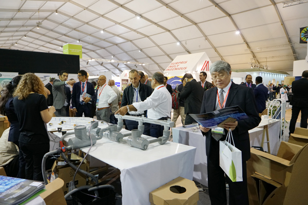 ??? 11月8日上午,在摩中商會、摩洛哥外貿(mào)銀行、香港匯盛資本等機(jī)構(gòu)負(fù)責(zé)人的陪同下,紀(jì)勤應(yīng)總經(jīng)理一行參觀了聯(lián)合氣候大會主展館。展會現(xiàn)場來自世界各地節(jié)能環(huán)保產(chǎn)業(yè)技術(shù)展示、部分獨(dú)具匠心的展臺設(shè)計(jì)展現(xiàn)出的世界各國實(shí)現(xiàn)綠色循環(huán)低碳發(fā)展,推進(jìn)清潔能源、可再生資源,應(yīng)對氣候變化、追求美好未來的決心等給考察團(tuán)一行留下了深刻的印象。