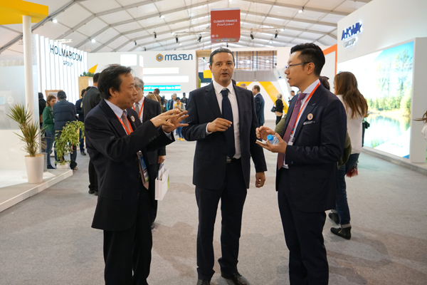 ??? 11月9日上午,摩洛哥丹吉爾大區(qū)行政長官Omari先生在聯(lián)合國氣候大會展館現(xiàn)場會見了紀(jì)勤應(yīng)總經(jīng)理一行。