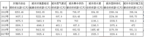? ? 近幾年,國內(nèi)城市建設(shè)步伐加快,各類投資金額尾部增長,根據(jù)國家統(tǒng)計(jì)局?jǐn)?shù)據(jù)顯示:2012年國內(nèi)環(huán)境污染治理投資總額8253.46億元,到2017年預(yù)計(jì)約9985.5億元;2012年國內(nèi)城市環(huán)境基礎(chǔ)設(shè)施建設(shè)投資額5062.65億元,到2017年約5625.4億元;2012年國內(nèi)城市燃?xì)饨ㄔO(shè)投資額551.81億元,預(yù)計(jì)2017年達(dá)610.1億元;2012年城市集中供熱建設(shè)投資額798.07億元,2017年預(yù)計(jì)約685.2; 2012年城市排水建設(shè)投資額934.08億元,2017年約1525.3億元;2012年國內(nèi)城市園林綠化建設(shè)投資額2380.04億元,2017年約2220.4億元;2012年國內(nèi)城市市容環(huán)境衛(wèi)生建設(shè)投資額398.64億元,預(yù)計(jì)2017年達(dá)602.2億元。