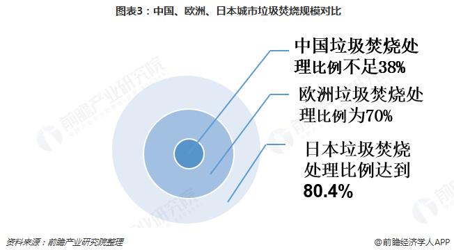 ? ? 但從全球范圍內(nèi)的垃圾處理行業(yè)來看,中國垃圾無害化處理中采用焚燒方式處理的比例仍然較低,目前占比不足38%,而發(fā)達國家的處理能力普遍在65%以上,日本垃圾焚燒達到80.4%,歐洲超過70%??梢钥闯觯壳爸袊诶贌幚砺噬吓c國外發(fā)達國家相比還存在一定的差距。在城鎮(zhèn)化率不斷提高以及土地資源緊缺的當(dāng)下,中國垃圾焚燒處理結(jié)構(gòu)亟待調(diào)整。
