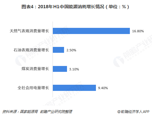 ? ? 2018年上半年,全社會(huì)用電量32291億千瓦時(shí),同比增長(zhǎng)9.4%,增速比2017年同期提高3.1個(gè)百分點(diǎn),創(chuàng)6年來(lái)新高。其中,煤炭消費(fèi)穩(wěn)中有升,全國(guó)煤炭消費(fèi)同比增長(zhǎng)3.1%左右;石油消費(fèi)保持平穩(wěn),表觀消費(fèi)量同比增長(zhǎng)2.5%左右;天然氣消費(fèi)大幅增長(zhǎng),表觀消費(fèi)量同比增長(zhǎng)16.8%左右;電力消費(fèi)快速增長(zhǎng)。