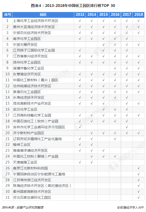 ? ? 2018年中國化工園區(qū)排行榜TOP 30,集中分布在東部沿海地區(qū)