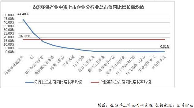 ? ? 節(jié)能環(huán)保產(chǎn)業(yè)與其他行業(yè)的交叉性比較強,細分行業(yè)眾多。報告對截至4月30日總市值同比增長率排名前15的細分行業(yè)總市值同比增長率均值情況進行分析,發(fā)現(xiàn)在GICS4級行業(yè)分類下,環(huán)境與設(shè)施服務(wù)行業(yè)總市值同比增長率均值最高,遠超產(chǎn)業(yè)整體。主要是在環(huán)保治理壓力下,環(huán)保相關(guān)行業(yè)發(fā)展前景更被看好。