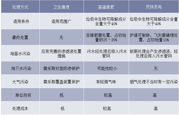 ? ? 從生活垃圾無害化處理方式來看,目前我國生活垃圾無害化處理的方式主要有三種:衛(wèi)生填埋、焚燒和高溫堆肥,對比三種垃圾無害化處理方式,和傳統(tǒng)的堆肥、填埋相比,焚燒具有處理效率高、占地面積小、對環(huán)境影響相對較小等優(yōu)點,更能滿足城市生活垃圾處理對減量化和無害化的要求。