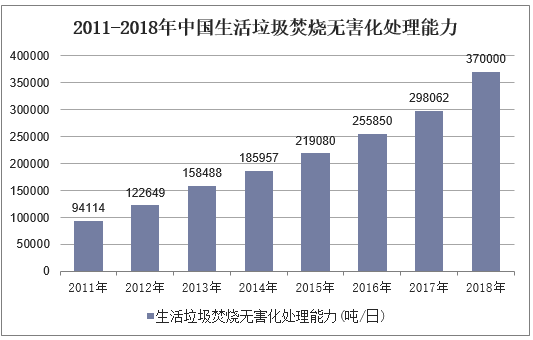 ? ? 我國垃圾焚燒發(fā)電行業(yè)起步于20世80年代末,通過引進國外先進的焚燒設(shè)備和技術(shù),消化吸收優(yōu)化,先后經(jīng)歷了產(chǎn)業(yè)化研發(fā)、裝置國產(chǎn)化等階段。自2005年BOT模式在垃圾焚燒行業(yè)大規(guī)模推廣開始,行業(yè)迎來一波快速發(fā)展,2011-2018年中國生活垃圾焚燒無害化處理能力逐年提高,2018年達到37萬噸/日,同比增長24.1%。