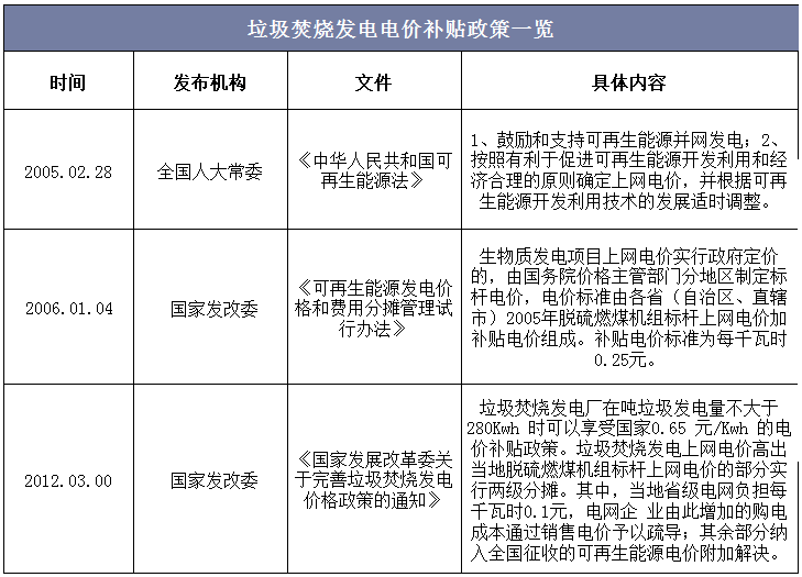 ? ? 2006年我國開始實施《可再生能源法》,法律規(guī)定從火電銷售電價中征收可再生能源電價附加作為可再生能源發(fā)展基金用以補貼,風(fēng)電、光伏、垃圾焚燒發(fā)電等都在補貼范圍。2012年,《國家發(fā)展改革委關(guān)于完善垃圾焚燒發(fā)電價格政策的通知》提出,垃圾焚燒發(fā)電廠在噸垃圾上網(wǎng)電量不大于280度時可以享受國家0.65元/度的電價補貼政策,高出當(dāng)?shù)孛摿蛉济簷C組標桿上網(wǎng)電價的部分實行兩級分攤。其中,當(dāng)?shù)厥〖夒娋W(wǎng)負擔(dān)每千瓦時0.1元,電網(wǎng)企業(yè)由此增加的購電成本通過銷售電價予以疏導(dǎo),其余部分納入全國征收的可再生能源電價附加解決。