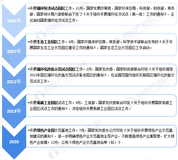 從政策角度來看,早在21世紀(jì)初開始,國家發(fā)改委、工信部、環(huán)保部等部委紛紛開展綠色類產(chǎn)業(yè)園區(qū)創(chuàng)建活動,隨后生態(tài)工業(yè)園、循環(huán)化改造園、低碳工業(yè)園等工作相繼展開,具體如下: