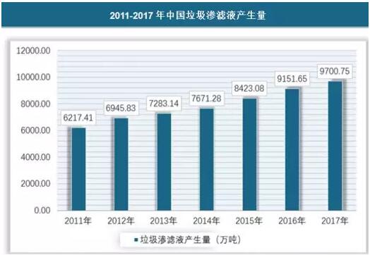 ? ? 此外,有關(guān)數(shù)據(jù)顯示,2017年我國(guó)日均垃圾滲濾液產(chǎn)生量為26.57萬(wàn)噸,全年垃圾滲濾液產(chǎn)生量達(dá)到9700.75萬(wàn)噸,較上年增長(zhǎng)549.1萬(wàn)噸,同比增長(zhǎng)6%。