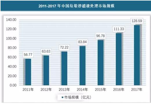 ? ? 與之一同增長(zhǎng)的還有市場(chǎng)規(guī)模,相關(guān)數(shù)據(jù)顯示,2017年我國(guó)垃圾滲濾液處理市場(chǎng)規(guī)模達(dá)到128.59億元,較2016年多了17.26億元,增長(zhǎng)了15.5%。
