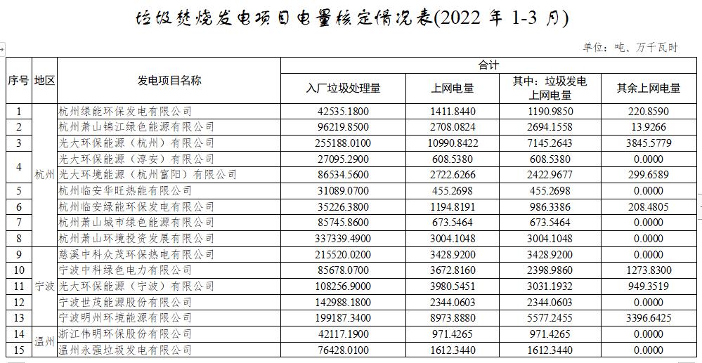 日前,浙江發(fā)布關于核定垃圾焚燒發(fā)電項目2022年1-3月垃圾發(fā)電上網(wǎng)電量等事項的通知。詳情如下:
