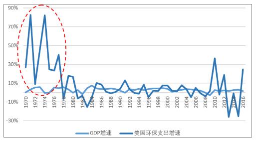 美國環(huán)保支出增速與GDP增速