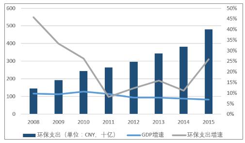 中國環(huán)保支出增速與GDP增速