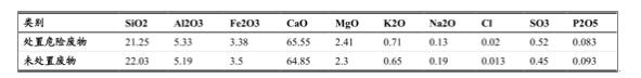 北京水泥廠投加危險廢棄物前后熟料化學(xué)成份對比(%)表明協(xié)同處置危廢后對水泥品質(zhì)影響不大