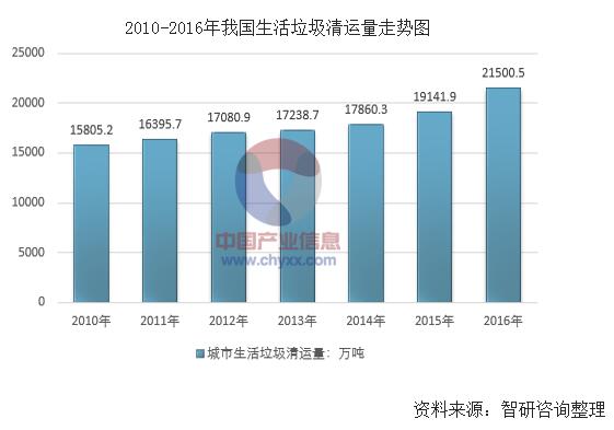? ? 2016年年末全國(guó)城市共有生活垃圾無(wú)害化處理場(chǎng)(廠)940座,比上年增加50座,日處理能力62.1萬(wàn)噸,處理量1.97億噸,城市生活垃圾無(wú)害化處理率96.62%,比上年增加2.52個(gè)百分點(diǎn)。