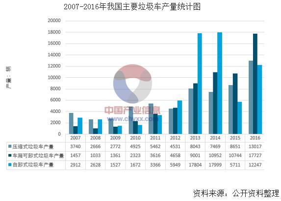 ? ? 據(jù)統(tǒng)計(jì):2016年我國(guó)壓縮式垃圾車(chē)產(chǎn)量為13017輛;車(chē)廂可卸式垃圾車(chē)產(chǎn)量為17727輛;自卸式垃圾車(chē)產(chǎn)量為12247輛。