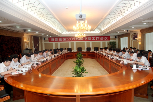 To summarize the results achieved by Conch Venture for 1H 2015, discuss the domestic and overseas economic conditions which we are facing now and the ‘Thirteenth Five-year Plan’ , lay out the work for 2H 2015, on 25 July 2015, the 2015 interim working conference of Conch Venture was held at room 582, conch international conference center. The leaders of the Company and its subsidiaries attended the meeting.